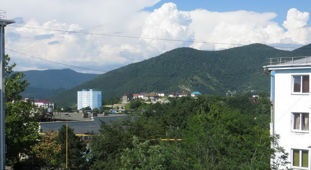 Кондиционер, окна пластиковые, застекленная лоджия с видом на уютный зеленый двор и панораму гор.